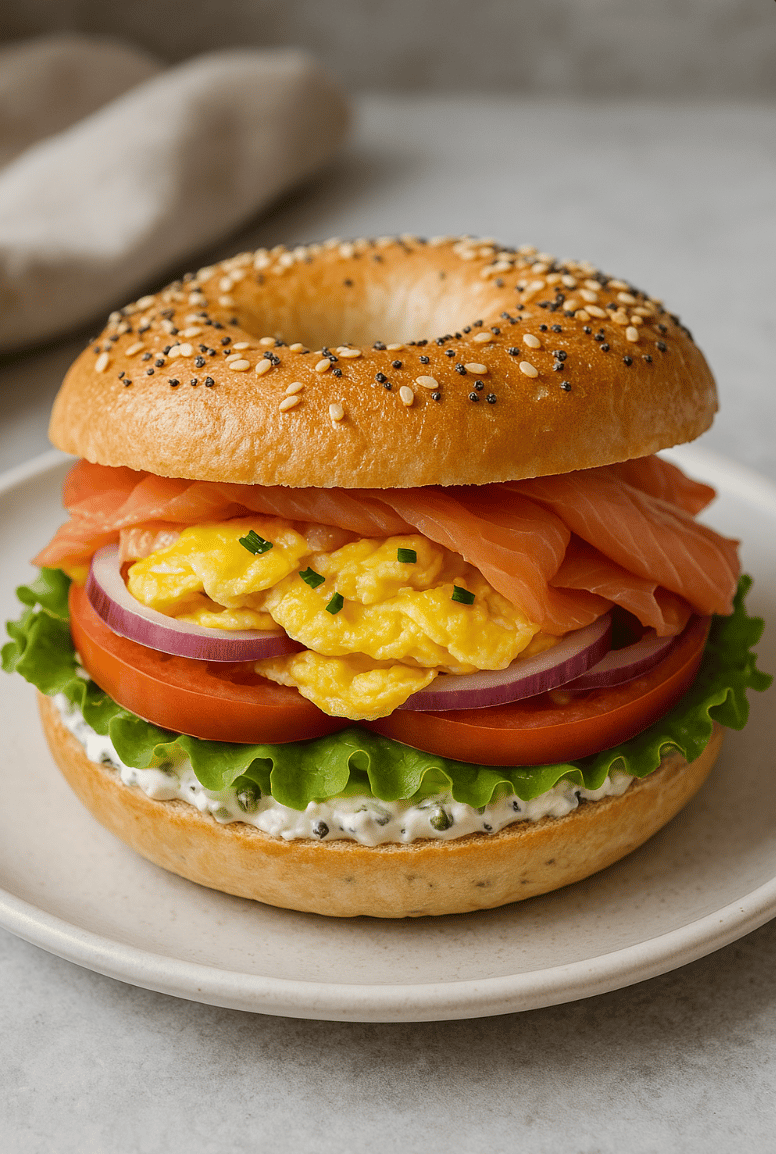 Egg Sandwich with Smoked Salmon & Cream Cheese